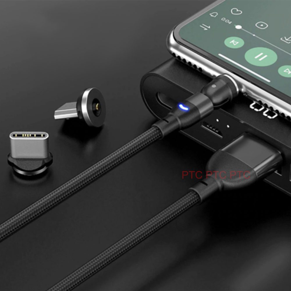 540 Magnetic Charging Cable Phone Charger Cord, 3 in 1 Nylon Braided Magnetic USB Cable for Micro USB/ Type-C/ USB-C/ iPhone charger Lead, 1M Black