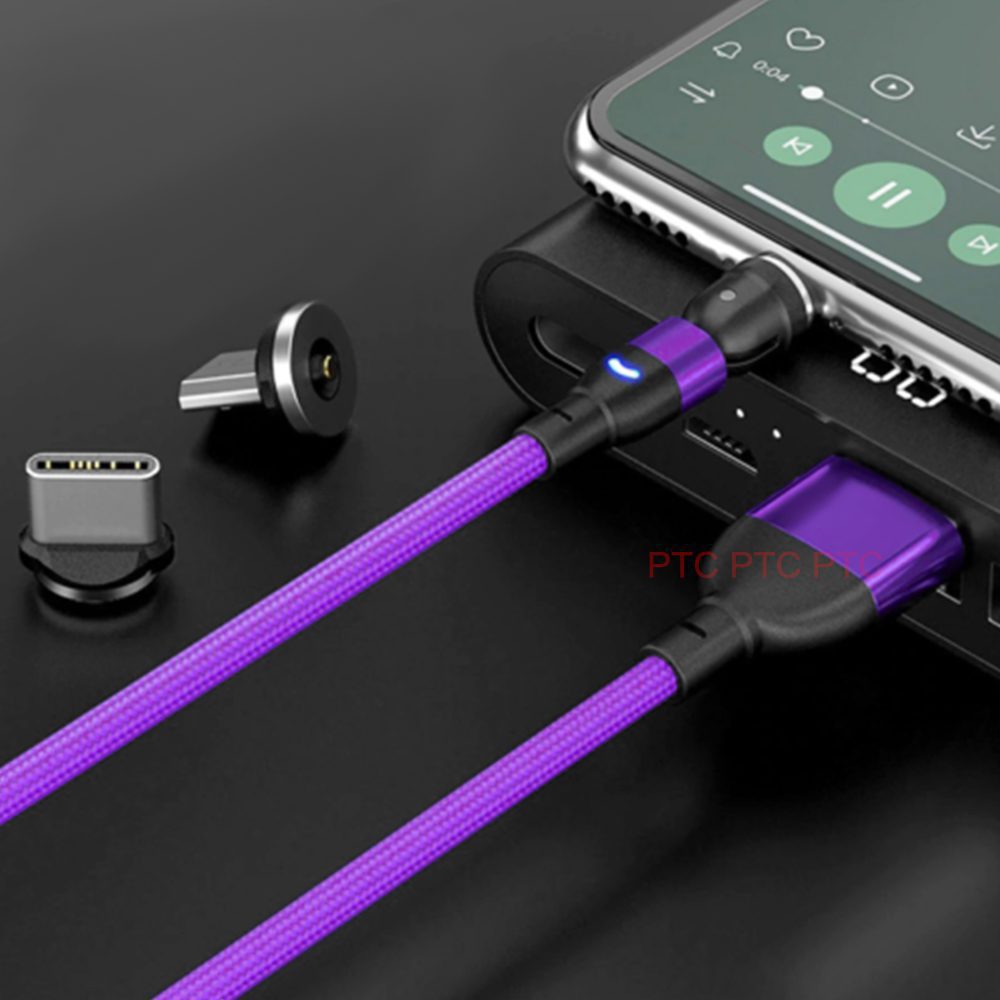 540 Magnetic Charging Cable Phone Charger Cord, 3 in 1 Nylon Braided Magnetic USB Cable for Micro USB/ Type-C/ USB-C/ iPhone charger Lead, 2M purple