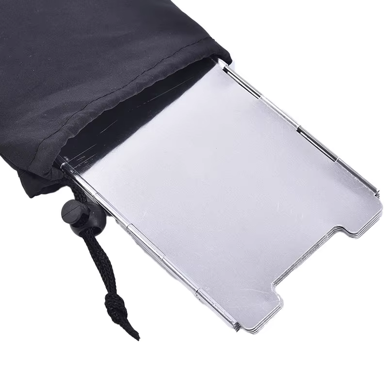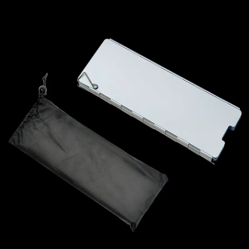 This camping gas stove windshield is high quality and durable and made from aluminium alloy. The camping stove windshield protects the flame from the wind while your cooking outside, it also saves fuel due to increased efficiency. The windshield also has built in pegs to ensure the windshield is secured in place into the ground.