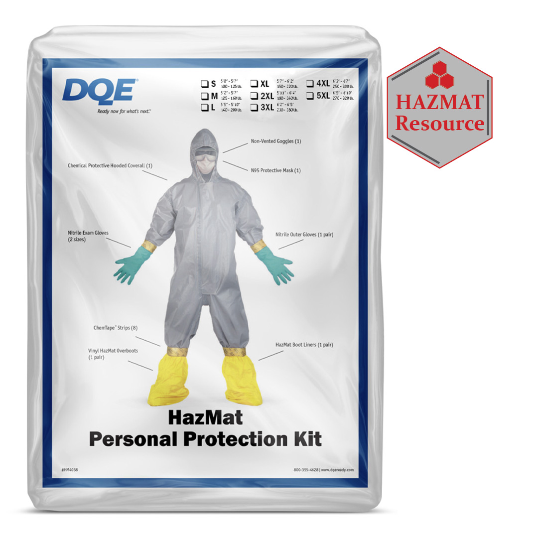 The Chemical Resistant Coveralls Kit contains personal protective equipment that protects against hazardous chemicals and biohazards during hazmat emergencies and decon.