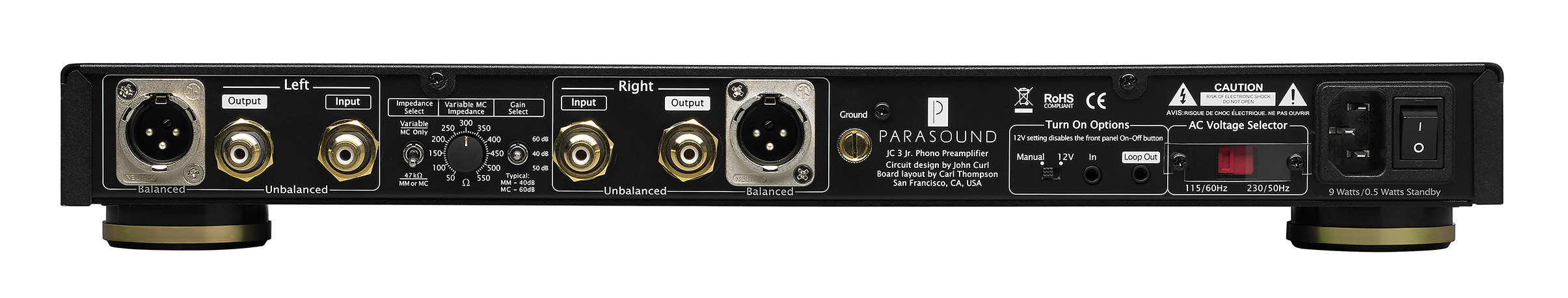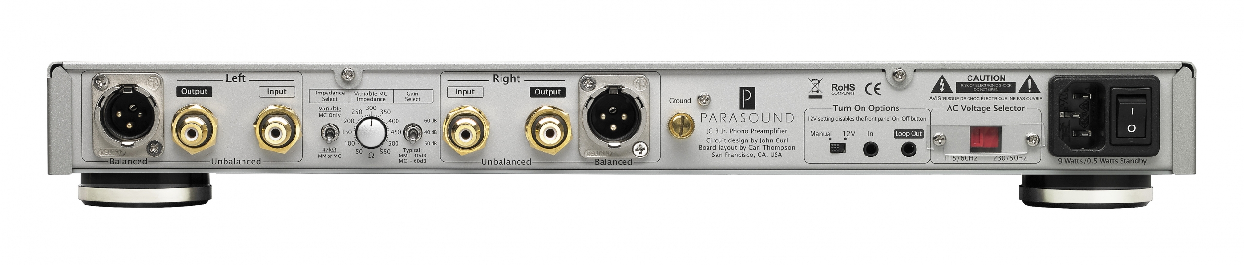 John Curl designed the Parasound JC 3 Jr. at a caliber that allows listeners to concentrate on the music. Simply excellent, neutral and transparent, without any background noise. Dynamic, harmonious, completely articulated, and very well balanced.