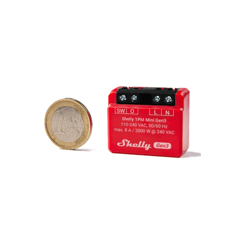 The smallest relay switch in the world for smart control and precise power monitoring. Automate your lights or small electrical appliances in less than 10 minutes and control and monitor them from anywhere. Small enough to fit behind any wall switch or socket, the Shelly 1PM Mini Gen3 can be retrofitted and is highly compatible with your existing smart ecosystem.