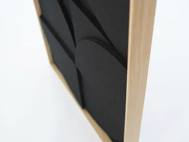 The single VicShape 3D is a relief art panel elaborated from three layers of PET HD for sound absorption framed in a high-quality premium frame in natural oak veneer.